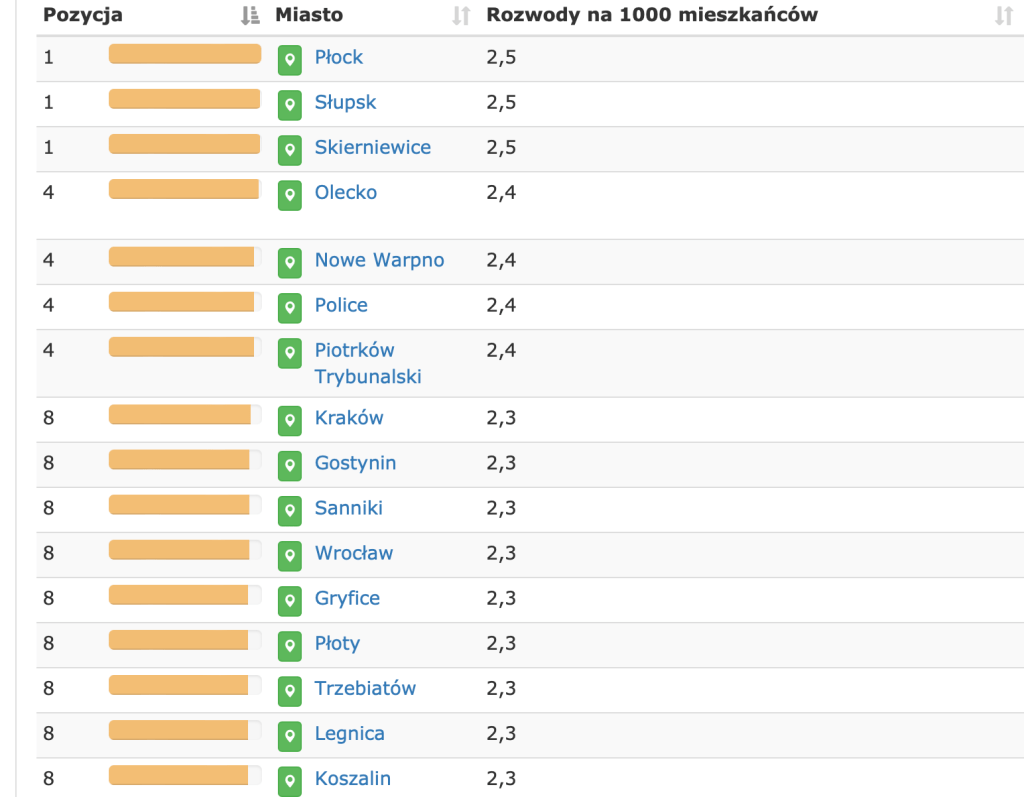 (swoją drogą skoro tak lubimy się porównywać, to Rosjanie – trzecie miejsce na świecie, Białorusini – piąte, i Ukraińcy – dziewiąte, rozwodzą się dużo częściej niż Polacy)